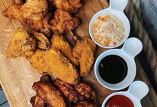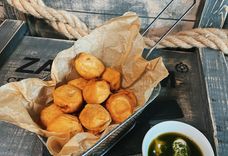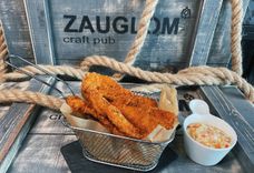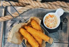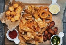 165/100/100/165/170/50/50 г • Куриные нагетсы, луковые кольца, картофель фри, сырные палочки, хлебные гренки